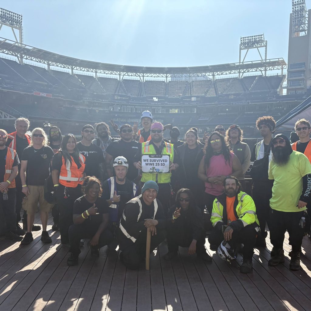 Rhino San Diego completed a massive 13 day run in November with the WWE Survivor Series show at Petco Park. From a numbers point of view this was one of Rhino’s biggest jobs ever – 535 people working 1,965 shifts logging 15,853 hours. “I am more than proud of our crew, who all worked 10-12 hour days throughout this run,” said Field Supervisor Jonathan Jimenez. “Rhino San Diego received a lot of positive feedback from production managers Jake and Scott who were extremely thankful of our team.”